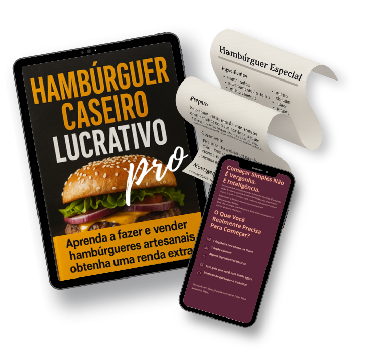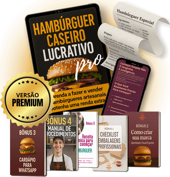 Aprenda a precificar, montar cardápio digital, criar receitas inteligentes e apresentar seu hambúrguer com visual de delivery profissional.